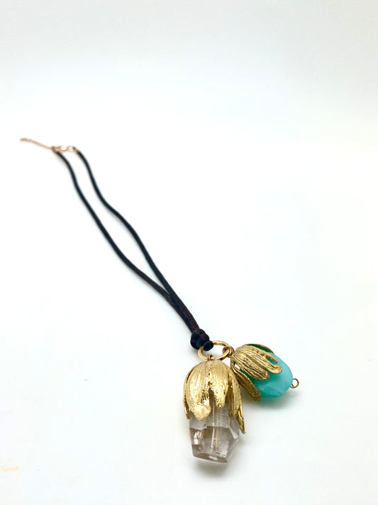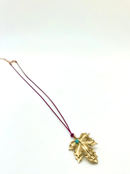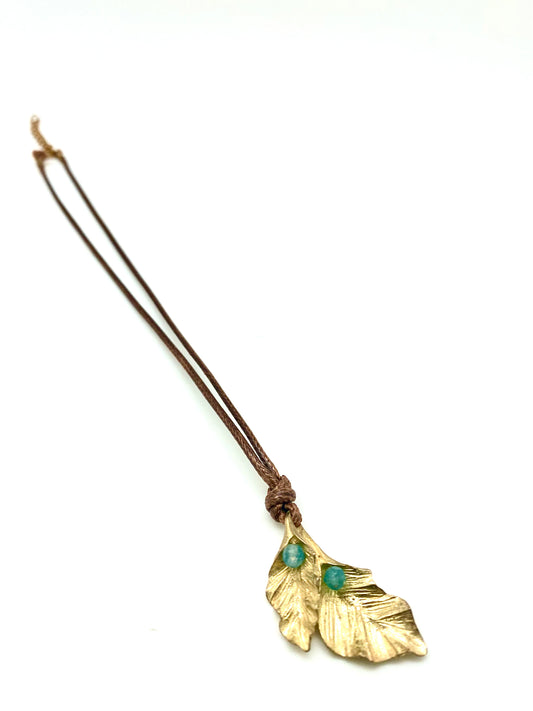 Collar hoja de parra y aguamarina