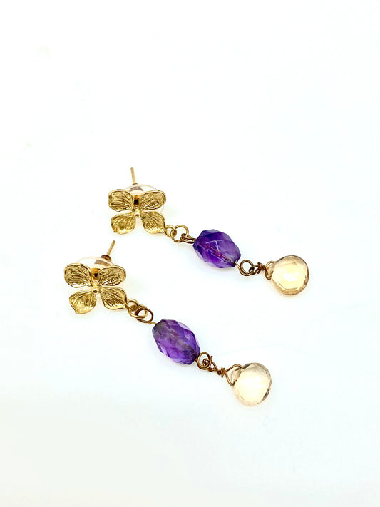 Pendientes flor/cuarzo rosa